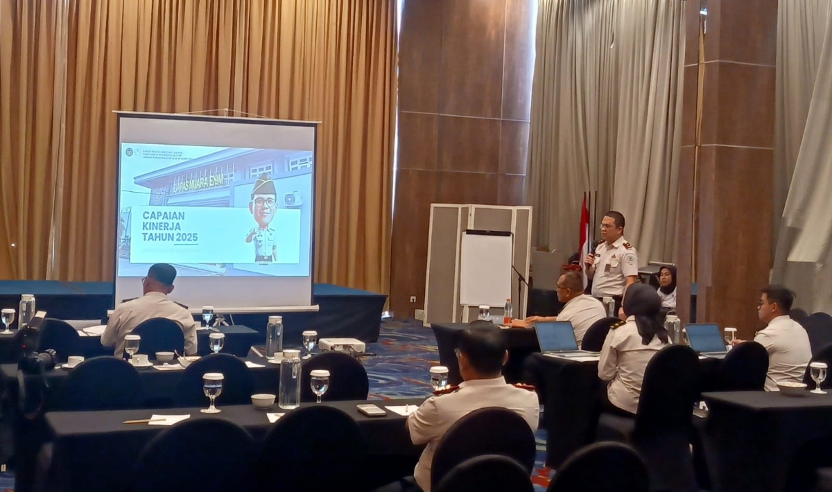 Nusantara Aktual – Palembang— Kepala Lembaga Pemasyarakatan (Kalapas) Kelas IIB Muara Enim memaparkan hasil kinerja sepanjang tahun 2025 serta rencana aksi strategis tahun 2026 dalam kegiatan paparan dan evaluasi kinerja yang dilaksanakan di Hotel Ballroom Aston di diikuti oleh Kakanwil dan Ka.UPT se Sumatera Selatan, Kamis (05/02).