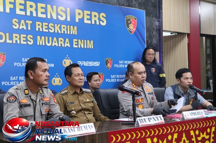 Turut mendampingi dalam konferensi pers tersebut, Kasat Reskrim AKP M. Andrian, S.Tr.K., S.I.K., M.Si dan Kasi Humas Polres Muara Enim AKP RTM. Situmorang.!